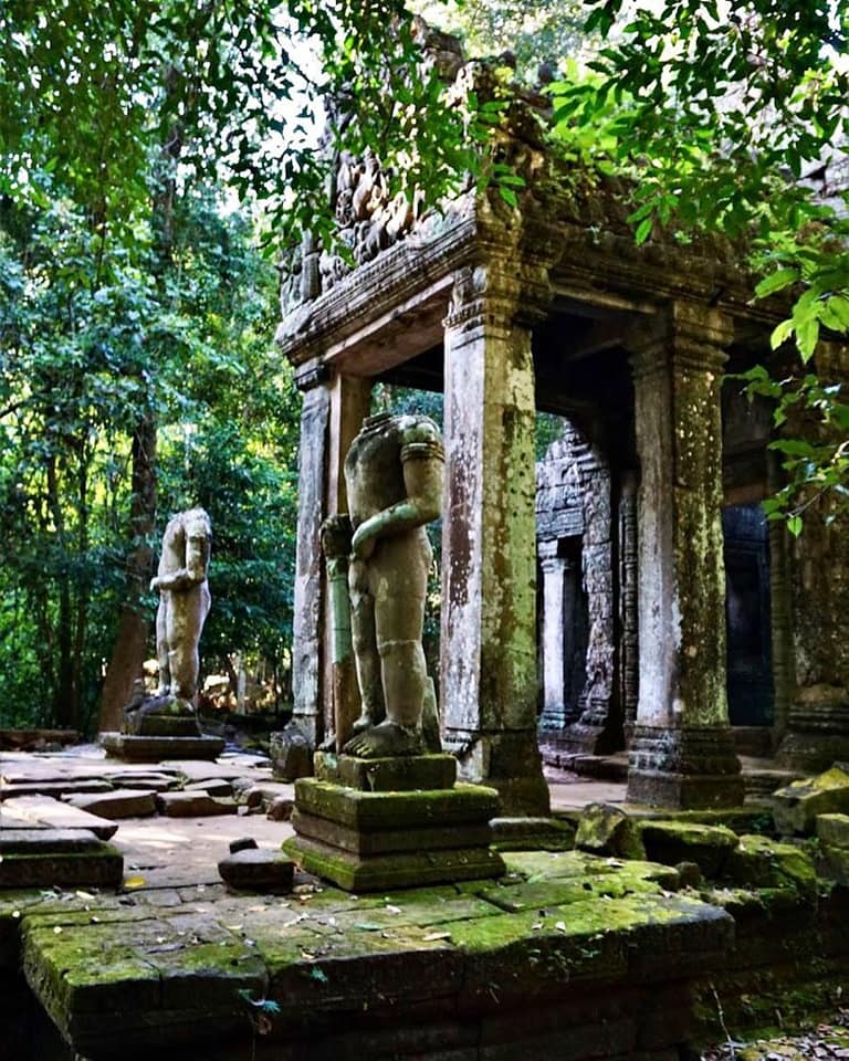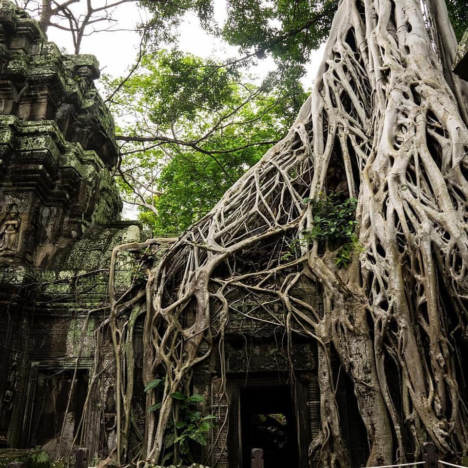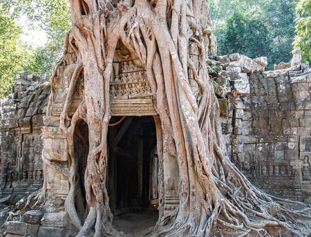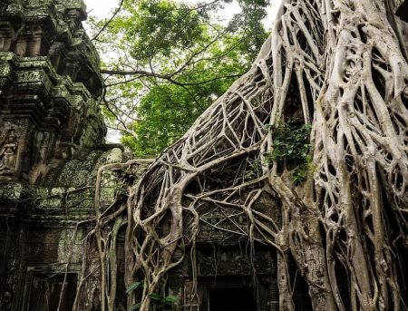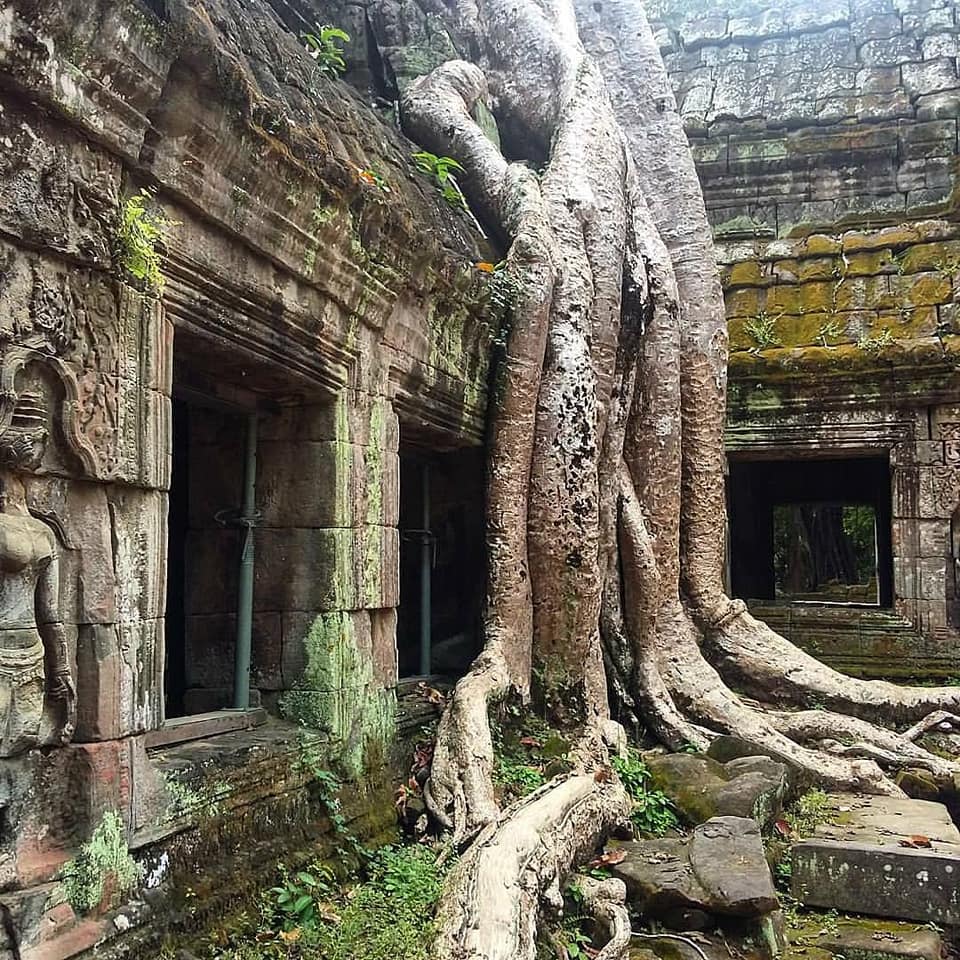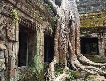 Le point de départ est Ta Prohm, c’est un temple où les racines des arbres ont envahi les toits et les galeries du temple. Ta Prohm est l’un des temples bouddhistes les plus atmosphériques d’Angkor. Il a été construit par le roi Jayavarman VII à la fin du XIIe et au début du XIIIe siècle. La superproduction hollywoodienne « Tomb Raider » (avec la participation d’Angelina Jolie) a fait la renommée de ce temple. Une fois arrivé sur le site, vous serez surpris par l’atmosphère unique créée par les temples angkoriens à moitié recouverts de grosses racines d’arbres et de végétation.