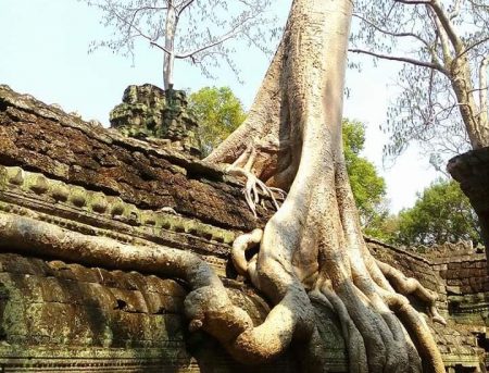 Le point de départ est Ta Prohm, c’est un temple où les racines des arbres ont envahi les toits et les galeries du temple. Ta Prohm est l’un des temples bouddhistes les plus atmosphériques d’Angkor. Il a été construit par le roi Jayavarman VII à la fin du XIIe et au début du XIIIe siècle. La superproduction hollywoodienne « Tomb Raider » (avec la participation d’Angelina Jolie) a fait la renommée de ce temple. Une fois arrivé sur le site, vous serez surpris par l’atmosphère unique créée par les temples angkoriens à moitié recouverts de grosses racines d’arbres et de végétation.